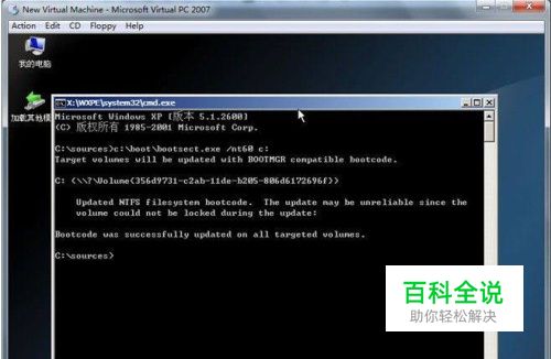 6、命令行输入C:bootbootsect.exe /nt60 c:,或者直接在开始、运行中直接输入也可以,然后重启系统;