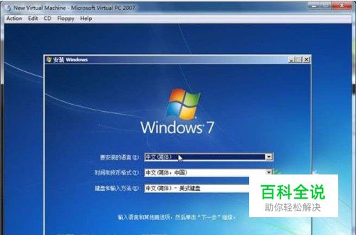 12、刚刚的WIN7安装界面又回来了,还是第一步提示的让你选择语言,默认就是中文(简体),不需要改了,直接点“下一步”;