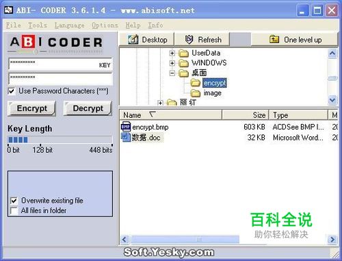 [用 户] ABI-Coder是一款专业的文件加密软件,它虽然没有采用Hide In Picture那样迷人的伪装技术,但在加密算法上却十分出色,支持最高448位的Blowfish算法加密(眼熟吗?跟Hide In Picture默认加密算法一样,只不过Hide In Picture只支持128位)、168位的3倍DES加密或者256位的AES加密。