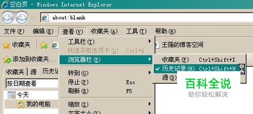 打开你的IE浏览器,点击菜单“查看”-“浏览器栏”-“历史记录”,即可。如下图: