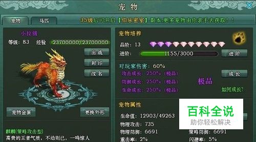 最后不得不提一句的是宠物的初始属性问题,宠物的初始属性是决定宠物成长道路的重要因素,每个种类的宠物初始属性都是不同的。玩家也许会有疑问自己和宠物和别人等级一样,品阶也一样,为什么攻击力会比别人低?这就是由于每只宠物的初始属性不同而产生的结果。就算后期宠物刷紫了成长都是250%也不会改变初始成长属性,所以,在最开始挑选宠物的时候,玩家就要注意有比较有选择地获得宠物哦!所谓一个好的开始等于成功的一半,祝愿6711《盛世三国》的每位玩家都早日寻找到自己的挚爱珍宠!