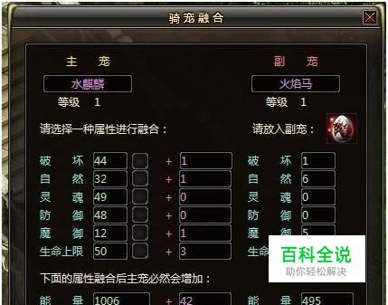 骑宠融合 骑宠融合不仅可以增加骑宠属性,还能增加能量和历练。点击“融合”按钮即将弹出面板,在面板中可以看到主宠的相关属性。放入副宠后,可以看到增加的属性。副宠属性越高,融合后增加的属性就越多。骑宠融合必须为同类坐骑,火焰马可以作为副宠和任意主宠融合。点击“融合”即完成融合过程。融合后副宠将消失。 骑宠融合 每个玩家每次都只能骑上一只骑宠,有了多余的骑宠,怎么处理呢?骑宠融合可谓是开发商对玩家的一次贴心的设计,让多余的骑宠不会白白占着位置没事干! 那样就可以利用多余的物资,来强大自己的实力了,是不是很贴心的设计吖。