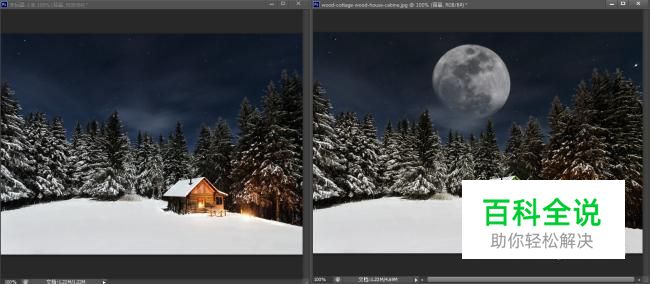 我们将月亮使用移动工具拖拽到我们的添加月亮的文档中,直接使用变换工具调整合适的大小即可!