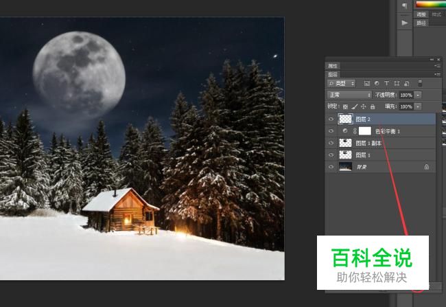 将顶层图层设为滤色,此时月亮的黑色区域将会消失。