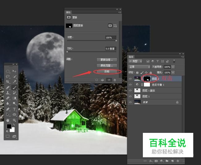 现在我们需要双击图层蒙版反相蒙版范围,这样我们就可以看到除了小房子那个部分其他区域都是正常画面。