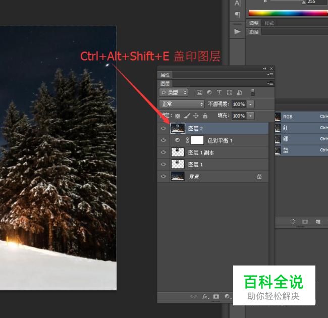 添加一个新的图层,我们希望将下层所有内容盖印到当前图层上。按快捷键:Alt+Ctrl+Shift+E