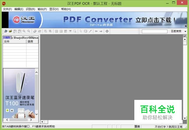 在桌面上双击汉王pdf OCR的快捷图标,打开该软件,进入其操作界面,如图所示: