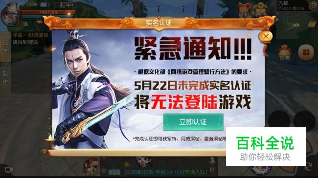 进入大区后,弹框提示进行实名认证,不然无法正常登陆游戏。