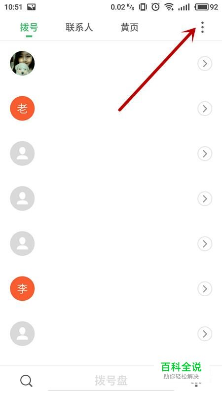 进入拨号键界面,选择右上角“三点”