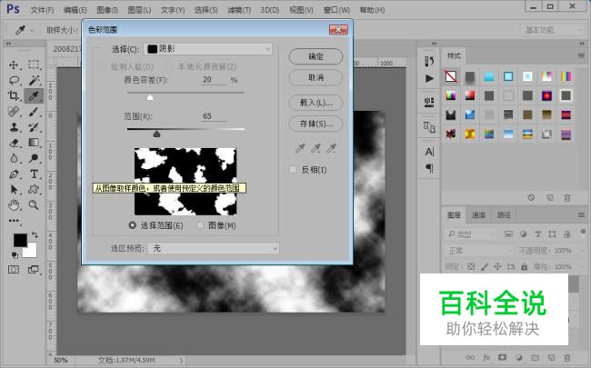 选择图层Temp,执行选择-色彩范围命令,设置如图所示参数;然后,对生成的选区进行羽化,参数如图所示。
