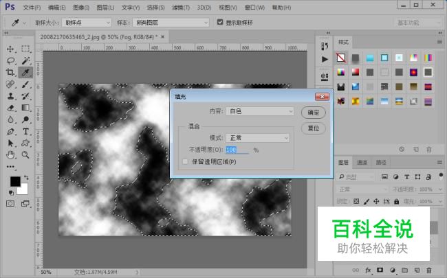 选择图层Fog,图层白色;Ctrl+D取消选区,选择图层Temp并删除。