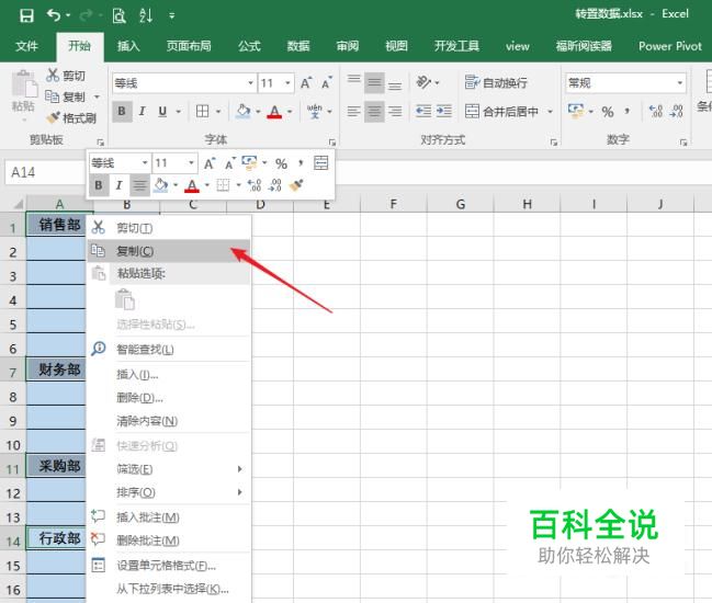 选择B列销售部姓名右键复制