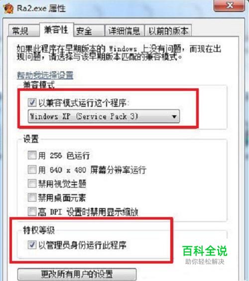 在Win10系统中红警安装目录里名为Ra2.exe的文件,右击鼠标。选择【属性】,然后在属性面板中勾选【以兼容模式运营这个程序】,并选择Windows XP(service Pack 3),再勾选下方的【以管理员身份运营此程序】,点击确定。