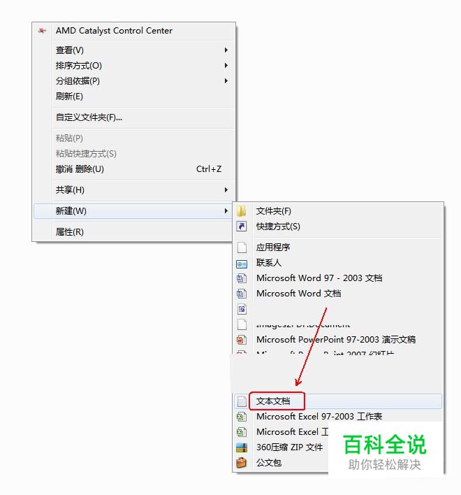 在桌面的空白处右击,在弹出的菜单列表中依次点选“新建”-“文本文档”。