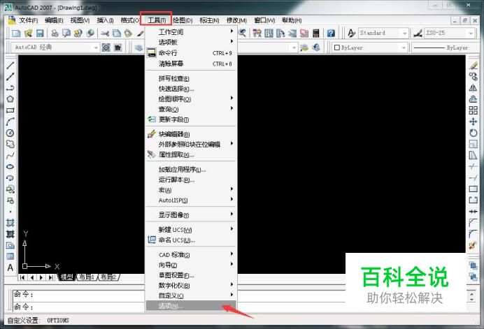 点击工具栏中的选项指令,如图所示。