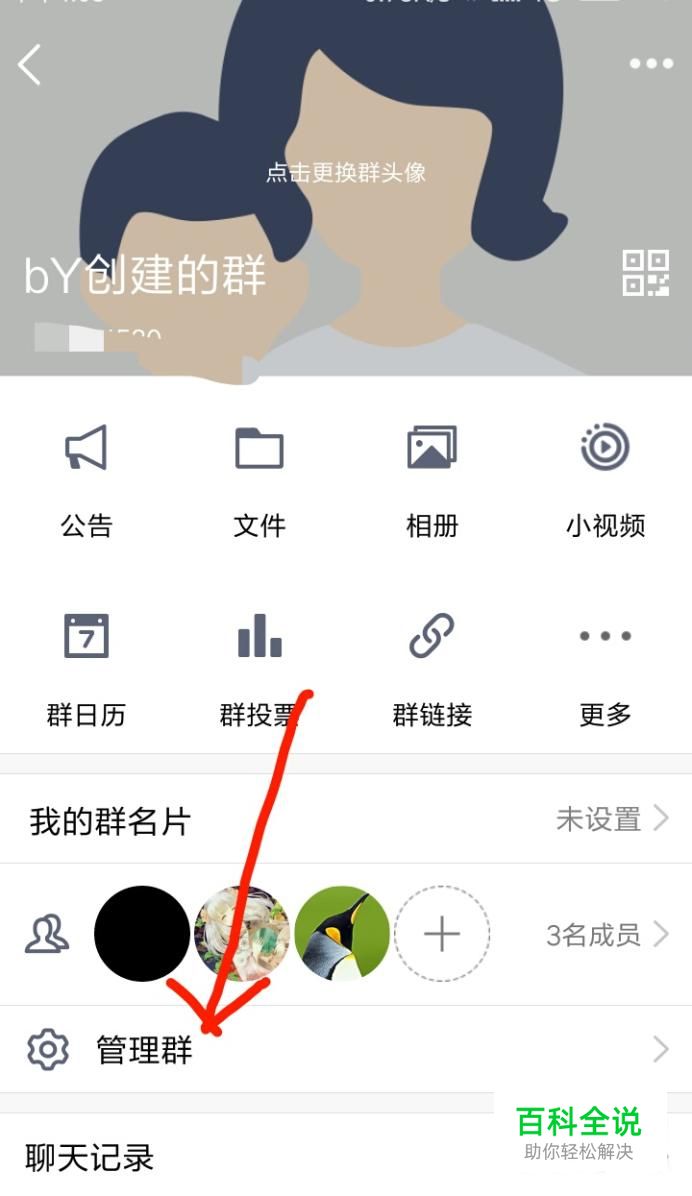 然后点击如图箭头所指的“管理群”。