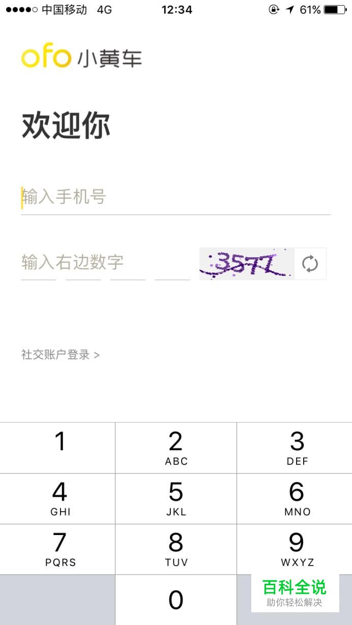 打开ofo共享单车,输入手机号码以及验证码进行登录。