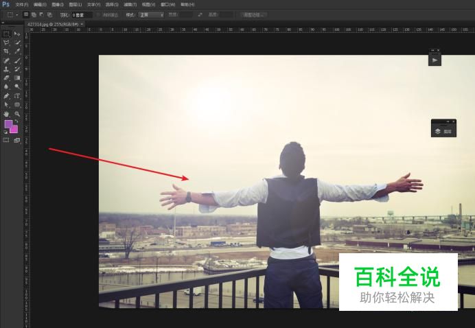 打开我们需要处理的图像,可以看到我们画面中的图像已经有光线效果。