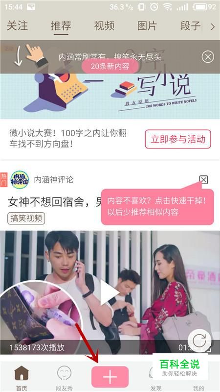 进入内涵段子主界面,选择“+”