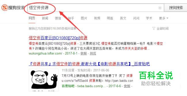 这些视频我们都可以通过迅雷网盘或者云盘观看,比如我们要看悟空传的完整视频,打开浏览器,搜索框中输入“悟空传资源”。