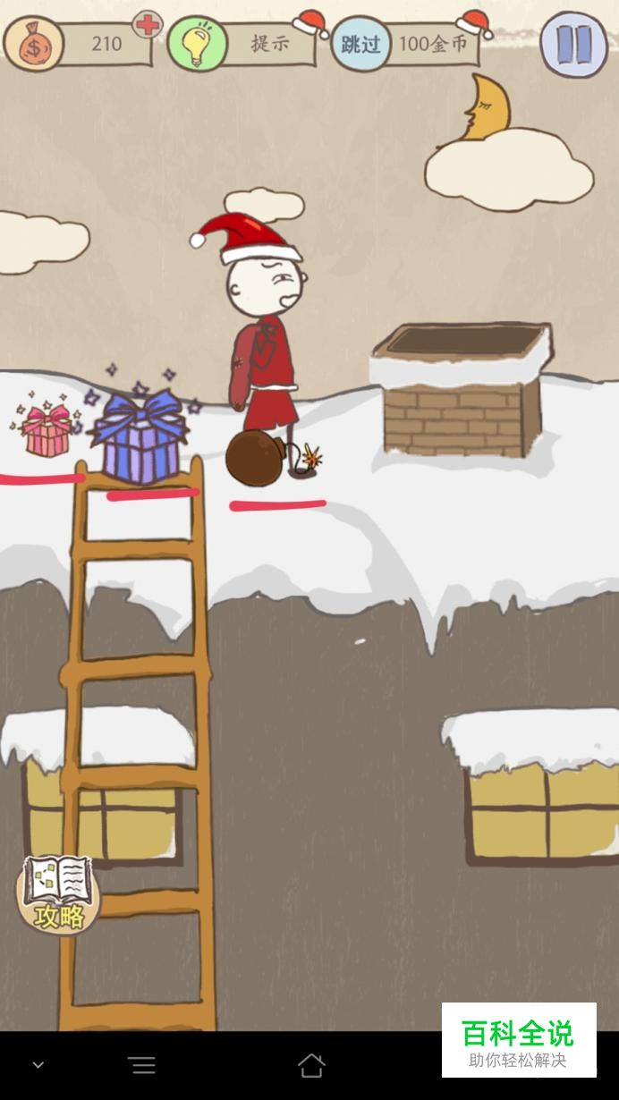 首先要摇晃手机,会掉出来三个物品,将两个礼盒放进右边的烟囱里。
