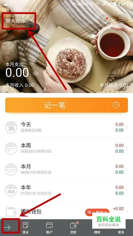 打开手机随手记的图标,找到底部左边的箭头,确定自己要用的是哪个账本;然后点击“记一笔”,就开始记账了;