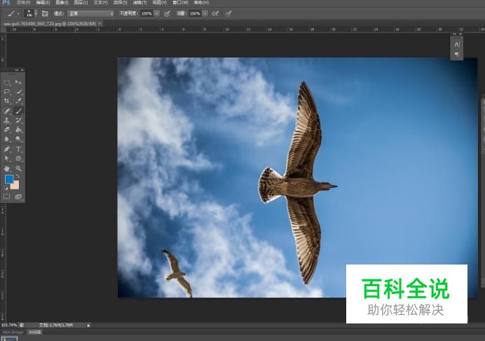 打开我们需要处理的图像,可以看到画面上有一只展翅翱翔的鸟。