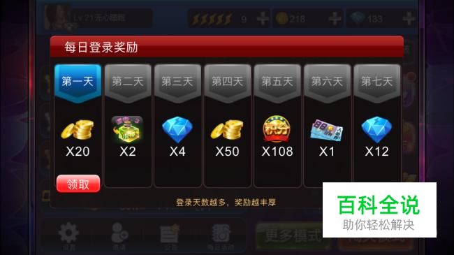 每天登陆游戏,会有不同的奖励,一般登陆满三天和七天后就可以领取到钻石。