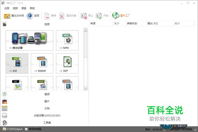 首先我们需要一个软件叫做格式工厂,打开软件,点击“AVI”。