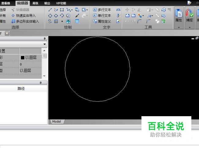 鼠标移动到界面中心,适当的拖动鼠标,画出一个圆。以下是小编画的圆如图所示。