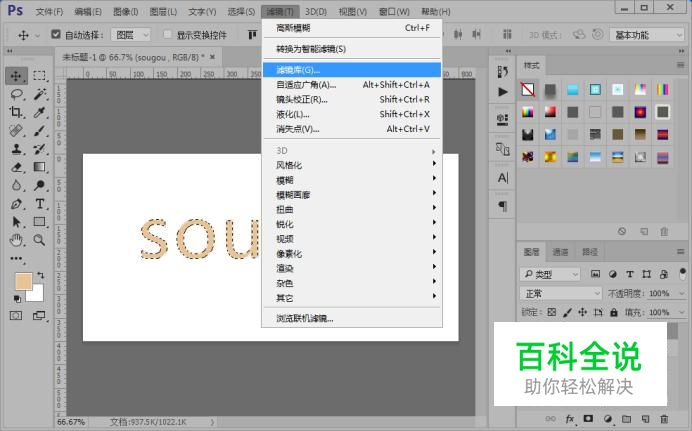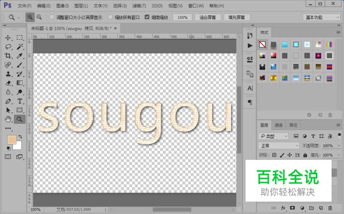 选择文字工具,输入文字;然后,栅格化文字图层。