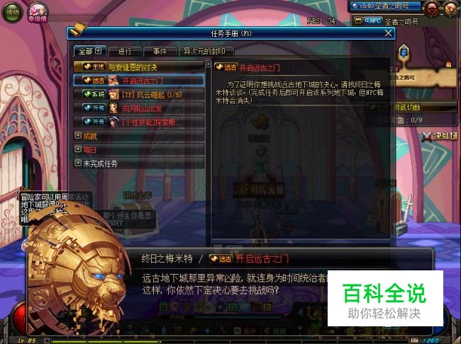 到达85级的时候,玩家可以在任务栏接受开启远古之门这个任务,接受以后会与梅米特进行对话,完成这个任务需要找到梅米特与他进行交谈。梅米特在圣者之鸣号上面。