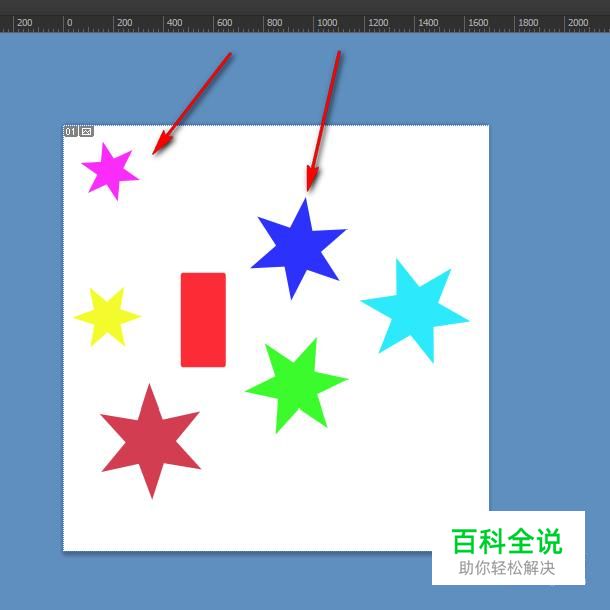保存之后,我们就可以看到,红紫色的五角星只显示了一部分,另外一部分被隐藏了。这时候我们需要把它往左边和上边拉一拉。