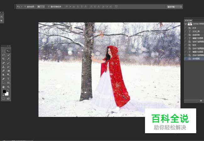 用套索工具,圈出2017数字,注意我们的背景是裙子与雪因此不可以直接圈选我们的所有文本。只能圈出一小部分,进行修复。