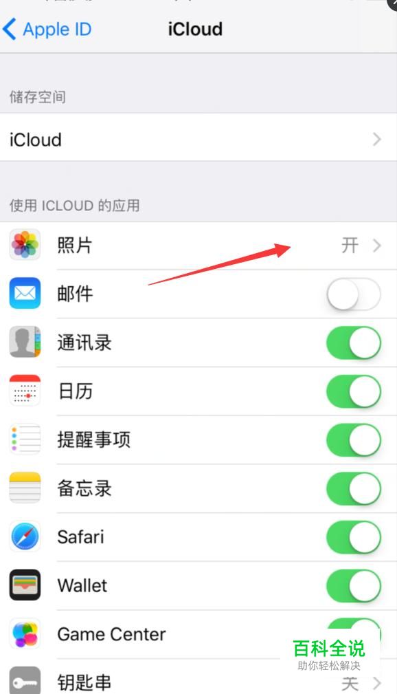 选择在 iCloud 里,有一项为“照片”的选项,如图所示