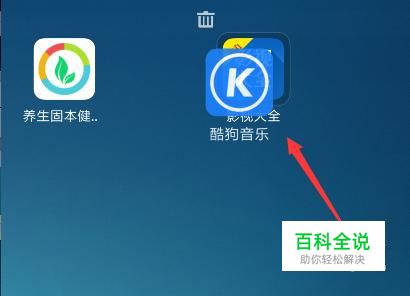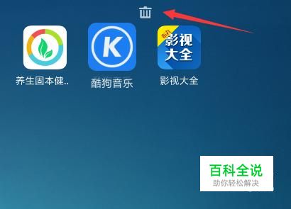 首先长按桌面某一图标,直到上方出现删除图标。