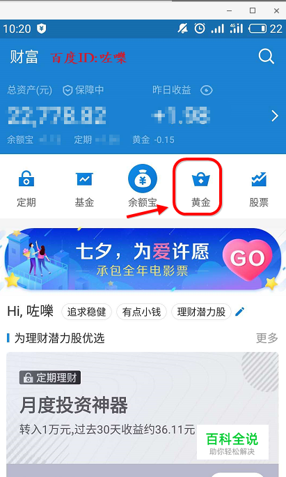 支付宝博时黄金收益怎么看打开支付宝app,找到财富栏目如图