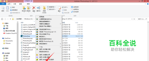 在我的电脑里找到Adobe Photoshop CC 2015安装源目录并打开。在下拉列表中找到 Adobe Photoshop CC 2015应用程序,选择右键——发送到——桌面快捷方式。