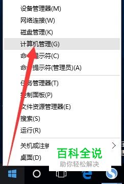 右击桌面左上角的“开始”按钮,从其右击菜单中选择“计算机管理”项进入,如图所示: