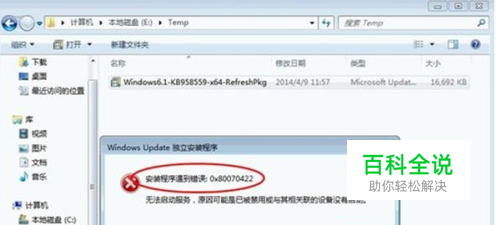 今天再装软件的时候,出现了这样的一个问题: 安装程序遇到错误:0x80070422,无法启动程序,原因可能是已被禁用或与其相关联的设备没有启动。