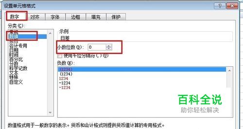 选择“数字”-“数值”,将小数位数设置为0,点确定。