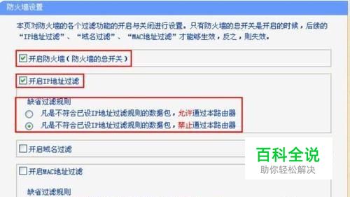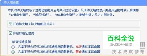 设置方法如下: 选择缺省过滤规则为:凡是不符合已设IP地址过滤规则的数据包,禁止通过本路由器:
