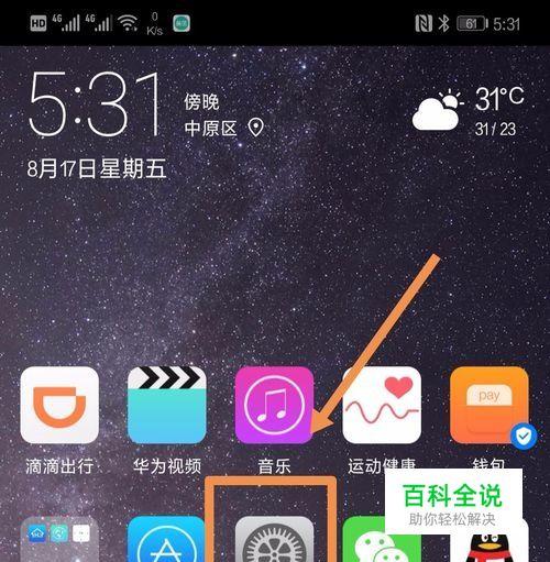 首先,我们在连接之前,需要打开荣耀7X手机的USB调试功能,该功能默认是关闭的。我们打开荣耀7X手机,找到设置图标进入。