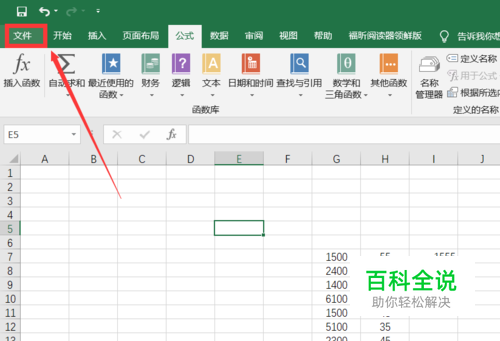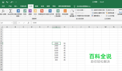 选择公式选项卡下的“自动求和”,仅对第一行数据求和,得到的结果是1555。