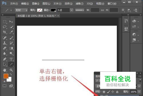 我们可以点击右键,选择栅格化,就可以把它变成图层了,如下图所示。