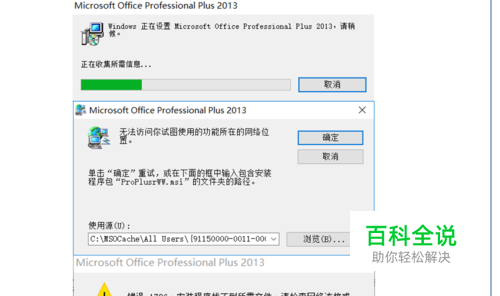 ②找不到路径“C:\MSOCache\All User”,并提示查找安装程序包“ProPlusrWW.msi”,