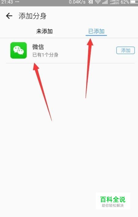 这里显示了各项可以分身的软件,点击想要分身的软件右侧的添加,比如微信。