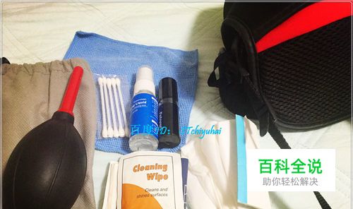 准备主要的清洁工具:一个气吹、一瓶镜头用清洁液、一把镜头刷、若干镜头擦拭试纸或者鹿皮布、若干棉球棒等。