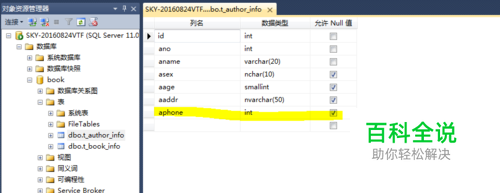 第四步,点击”是“按钮,输入表名称t_author_info,点击保存,创建数据库表,如下图所示: