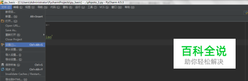 打开Pycharm,点击左侧的File,再点击菜单中的设置选项,如下图。